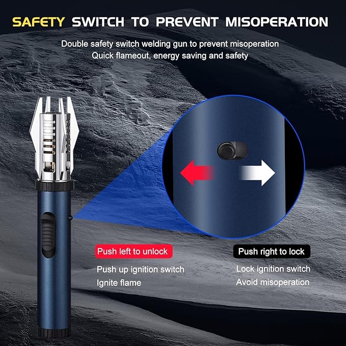 - 【Unique Jet Flame Color Conversion Technology】Our butane torch lighter features a Jet flame color conversion ring at the nozzle, which allows you to switch the flame from blue to red. This innovative technology, developed by us, adds a touch of uniqueness to your cooking experience. The surface of the flame color conversion ring at the nozzle of the lighter looks like a stain or burn mark, which is normal and not a trace of used and does not affect the lighters other functions.